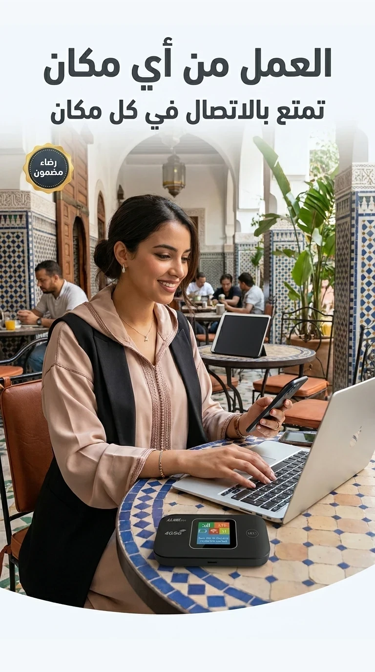 خلّي الاتصال ديالك حاضر فالسفر والخدمة والدار مع جهاز واي فاي متنقل برو إم 9. كيدعم الجيل الرابع والخامس وسهل الشحن بتايب سي ويشغل عدة أجهزة براحة كاملة مع توصيل سريع خلال 24 إلى 48 ساعة والدفع عند الاستلام وضمان استرجاع لمدة 14 يوم.